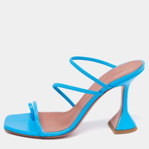 Amina Muaddi Blue Leather Naima Fluo Sandals Size 37.5